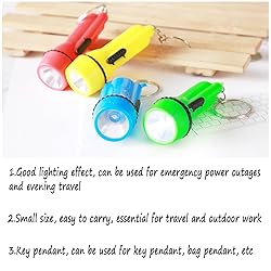 Cute design: the keychain flashlight is small and portable, it is not only a flashlight but also could be a key chain, have dual functions, exquisite and practical Material: the flashlights are made of plastic material and the key chain is made of stainless steel, which are lightweight and durable for your daily application Small and Lightweight: It is compact enough to fit in your pocket,car glove box,toolbox,nightstand or purse,ideal for home use,dog walking,camping and party decoration Assorted colors: come with 4 different colors, red, yellow, blue and green, beautiful and colorful for you to choose, these mini key chain flashlights will give you a different and surprising using experience Package contents: you will receive 24 pieces of mini flashlights in total, 6 pieces for each color, sufficient quantity to meet and satisfy your daily needs, you can also share with your families or friends