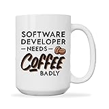 Programmer Coffee Mug 15oz White -software developer needs coffee badly - Computer Science Tech Web Developer IT Database Programming Deging Coding Software