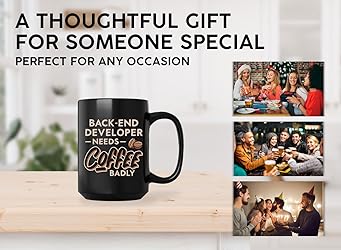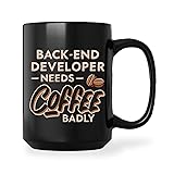 Programmer Coffee Mug 15oz Black -back-end developer needs coffee badly - Computer Science Tech Web Developer IT Database Programming Deging Coding Software
