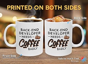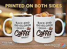 Programmer Coffee Mug 11oz White -back-end developer needs coffee badly - Computer Science Tech Web Developer IT Database Programming Deging Coding Software