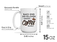 Programmer Coffee Mug 15oz White -back-end developer needs coffee badly - Computer Science Tech Web Developer IT Database Programming Deging Coding Software