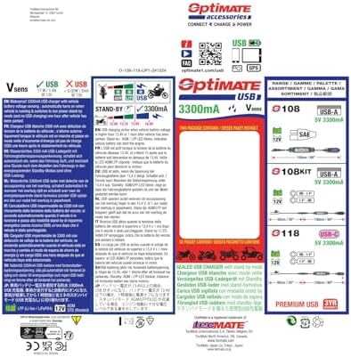 OptiMate USB O-118, Smart in-line 3300mA Motorcycle USB-C Charger, with Standby Mode and Vehicle Battery Monitor