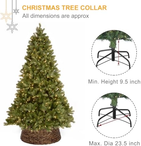- CHRISMTAS TREE DECORATION: This woven tree collar is a great alternative to a more traditional tree skirt. A natural rustic backdrop transforms your gift-giving traditions from simple moments to cherished memories. Upgrade Your Tree Display with our 23.5 inch Tree Collar!