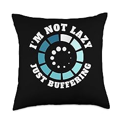 100% Polyester I'm not lazy, I'm just buffering. Perfect for computer nerds and programmers who have a great sense of humor. This Funny design will be a perfect Computing design you will love. And an ideal design for anyone who loves programming languages with funny humor. Perfect for programming nerds, and computer tech. 100% spun-polyester fabric Double-sided print Filled with 100% polyester and sewn closed Individually cut and sewn by hand Spot clean/dry clean only