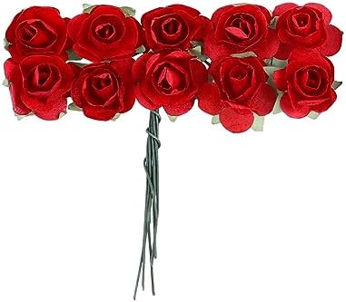 CCINEE 120pcs Mini Paper Flowers,Mulberry Paper 1/2" Artificial Rose Flower with Stem for DIY Crafts Projects Scrapbooking Wedding Decorations (Red)