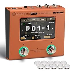 Ultra Compact Amp Modeler & Effects Processor, Powerful dual-core DSP Platform Ensure Ampero-grade Tone Quality. Ampero Mini can Handle up to 9 Effect Modules Simultaneously with its Flexible FX1, FX2, FX3 Effect Modules and Editable Effect Chain for the best Effect Combination Possibilities. More than 100 Effects. 100 Built-in Drum Rhythms and 100 Seconds Looper, 198 Presets, Adjustable Signal Chain with Maximum 9 Simultaneous Effect Blocks 4-inch 800 x 480 sharp color Touch Screen with instant control, 4 Assignable Footswitches with Halo LEDs Internal Voltage Boost Circuit for Great Headroom with Standard 9V DC Power Supply USB Audio Interface with Stereo Audio Streaming, Support OTG function for directly Connecting to iOS/Android Mobile Devices, Multi Language User Interface (Hardware) with Free Mac/Windows Software for Sound Editing and Presets Managing