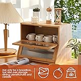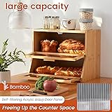 GHWIE Double Layer Bamboo Bread Box for Kitchen Counter,Large Capacity Bread Storage Bin,Bread Container with Acrylic Wavy Door Panel (Natural, Medium)