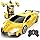 Coche de Control Remoto, Coches RC con Robot Transformable con Geniales Faros LED, Coche Juguetes 2.4Ghz con Rotación de 360 Grados y Deformación de Un Botón, Regalos de Navidad y Cumpleaños para Niños y Niñas (Amarillo)