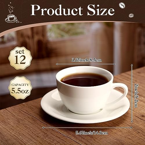 Maxdot 12 Set 5.5 OZ Porcelain Espresso Cups with Saucers White Ceramic Coffee Cups and Saucers Cappuccino Mug Latte Cup for Cafe Mocha Barista Coffee Shop