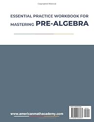 - ESSENTIAL PRACTICE WORKBOOK FOR MASTERING PRE-ALGEBRA is created by American Math Academy to complete Pre-Algebra mathematics, which includes:32 Topics32 Challenging Tests with Detailed Solutions1 Diagnostic TestTotal 600+ Practice QuestionsThis book brings together everything you need to know for the PRE-ALGEBRA. It will help you to cover all the math topics. The Number Systems-Operations Diagnostic TestIntegersDecimalsFractionsOrder Of OperationsPlace ValueDivisibility RulesUnit RatesPercentEstimationSequences, Patterns, and LogicAlgebra GCF and LCMRatio and ProportionsWord ProblemsAlgebraic ExpressionsEquations with One VariableEquations with Two VariableExponential ExpressionsRadical ExpressionsInequalitiesQuadratic EquationsScientific NotationGeometry AnglesDistance and MidpointSimilarity TheoremPythagorean TheoremPerimeter and Area of PolygonsVolumeCoordinate SystemSlopes and Slope-Intercept FormCircles, Circumference and AreaData Analysis - Probability Mean Median ModeProbabilityReading Charts and GraphsSolutionsDisclaimer: All rights reserved. No part of this publication may be reproduced in whole or in part, stored in a retrieval system, or transmitted in any form or by any means electronic, mechanical, photocopying, recording or otherwise, without written permission of the copyright owner.
