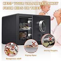 - 1.0 Cubic Feet Fingerprint Fireproof Home Safe With Fireproof Document Bag, Digital Security Safe With Removable Shelf Secure Cash, Jewelry and Valuables.