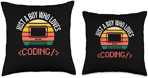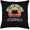 Tees for coding & computer science Just A Boy Who Loves Coding Computer Funny Throw Pillow, 16x16, Multicolor