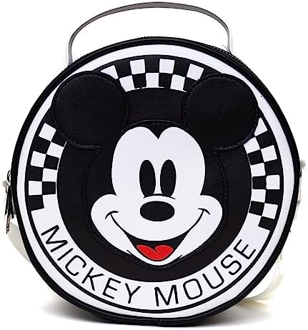 Introducing the Disney Bag, a trendy crossbody bag that will make your heart skip a beat! With its round shape and Mickey Mouse Smiling Face Applique, this bag is the perfect accessory to showcase your love for the iconic Disney character. The checker pattern in white and black adds a touch of sophistication to this playful design. Crafted from high-quality vegan leather, this bag is not only fashionable but also promotes ethical fashion. Whether you're strolling through the magical streets of Disneyland or simply adding a touch of Disney magic to your everyday outfit, this bag is guaranteed to turn heads and bring a smile to your face. Get ready to embrace your inner child and make a bold fashion statement with the Disney Bag!