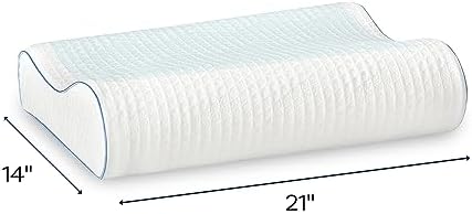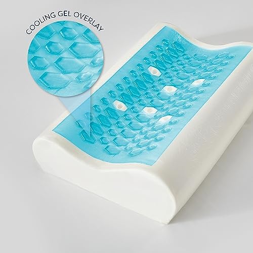 Memory Foam Pillow, Standard Contour, Ventilated Cooling Gel Overlay Memory Foam with Premium Cooling Cover, Side and Back Sleeper, White