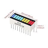 Product size: 25.5*10.1*7.9mm, Screen Dimension: 25.5*10.1mm, Pixels: 25mm, Digit height: 5mm. 10 Segment Digital Red LED Bar Graph Display Ultra Bright Emitting color available: Red(2.3V), blue(4.0V), green(2.4V), yellow((2.5V), amber, white and bi-color,etc. The product has a long service life, IC compatibility and low power consumption 10 Segment LED Bar Graph Display (2xSuper Red+3xYellow+4xSuper Green+1xBlue) for Arduino