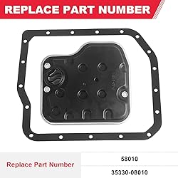 - Advantage: Tested & Certified to Meet or Exceed OEM Quality Standards. 100% Tested Before Leaving the Factory. Made of High Quality Material. Replace Part Number: 58010 Notice:Fits for U250E U151E U151F Transmission Compatible with LEXUS Vehicles: 2004-2006 ES330 2004-2006 RX330 2007-2009 RX350 2010-2013 RX450H Compatible with PONTIAC Vehicles: 2009-2010 VIBE Compatible with TOYOTA Vehicles: 2005-2007 AVALON 2003-2009 CAMRY 2009-2012 COROLLA 2004-2016 HIGHLANDER 2009-2013 MATRIX 2006-2012 RAV4 2004-2010 SIENNA 2004-2008 SOLARA Includes: 1 X Automatic Transmission Filter 1 X Gasket Warranty: The Automatic Transmission Filter come with 12 Months Warranty. Hassle-Free Return and Refund Policy. Please Buy it with Your Confidence.