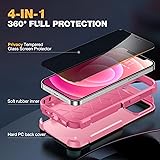 Diaclara Designed for iPhone 12 Case/iPhone 12 Pro Case, [with Privacy Screen Protector] [Anti Spy] [Military Grade Drop Protection] Heavy Duty Full-Body Shockproof Phone Case, Pink