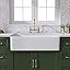 - APRONT FRONT DESIGN: The traditional apron front farm sink 30 inch adds a touch of rustic charm and character to your kitchen. The super glossy white apron sink design can complement a variety of kitchen styles, from traditional to modern, creating a seamless and integrated look with your kitchen cabinet and countertop. This apron farmhouse kitchen sink serves as a focal point, enhancing the overall aesthetic of the space and providing a warm and inviting atmosphere.