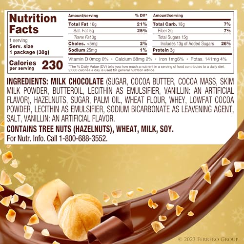 This holiday season, revel in the irresistible delight that is Ferrero Rocher. You'll love this set of 12 holiday gift packs and their festive bows. Each pack is filled with 3 of our irresistible Ferrero Rocher chocolates. Crafted with a tempting combination of whole crunchy hazelnuts dipped in delicious, creamy chocolate hazelnut filling and covered with milk chocolate, crispy wafers and gently roasted hazelnut pieces. Made from the highest-quality ingredients and presented in an elegant gourmet chocolate gift pack, each piece is individually wrapped in our signature golden wrapper, making this gift or holiday party treat even more unique and special. Celebrate all your holiday moments with Ferrero Rocher.