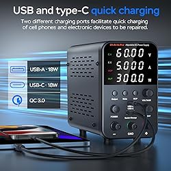 DC Power Supply Variable, 62V 5A Adjustable Switching Regulated DC Bench Power Supply with Intelligent Charging Mode, 18W USB Interface, Precision Encoder Knob