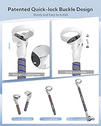 3 IN 1 Controller Extensions for Meta Quest 2 Controllers: Featuring three use modes - Double Stick Mode, Golf Club Mode, and Long Handle Mode - that allow you to choose the best option for your VR gameplay needs. Enhanced Immersion: Elevate your VR gaming experience with this zybervr quest 2 controller accessory that brings a realistic feel to games like Gorilla Tag, Golf+, Beat Saber, and Supernatural.This arm extenders for quest 2 enhances your gameplay and takes your VR experience to new heights. Enhanced Transparent Halo Protector: Combining aesthetics and functionality, this sleek protective ring for the Quest 2 controllers provides exceptional drop and shock protection. With its special pattern, it ensures maximum safety without blocking the signal. Patented Quick-lock Buckle Design: With a quick-lock buckle design, this gorilla tag long arms accessory is easy to set up and securely attaches to the Quest 2 controllers for a hassle-free setup process. Durable and Long-lasting: The ABS reinforced plastic shell used in the connection between the Beat Saber Handle and Quest 2 controllers ensures durability and long-lasting use, even during intense gaming sessions. Enhanced Comfort and Grip: The soft, non-slip foam covers provide a premium and comfortable grip during VR gaming. Make you enjoy maximum comfort and fully immerse yourself in the virtual reality experience. What You Will Get :2 x Zyber VR Handles Extension Grips for Meta Quest 2, 2 x Halo Protectors, 4 x Quick-lock Buckles, 1 x Shift Linkage Rod(with a nut), 2 x Protective Ropes, 1x Use Manual