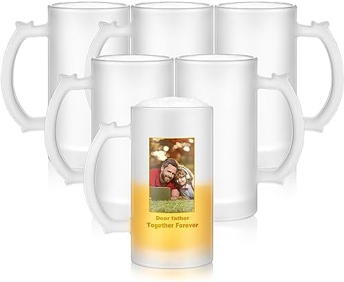 Mifoci 6 Pcs Sublimation Blank Beer Mugs Personalized Tazas Para Present 16 oz Frosted Beer Glass Cups Can Add Photo Text or Images on Gift for Husband Dad Men Groomsmen Wedding Oktoberfest