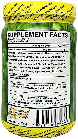 A Proprietary Blend of Fennel Seeds powderFlax seed powderBlack Walnut PowderNopal ExtractNoni ExtractSenna Leaf powderCascara Sagrada Burdock Root ExtractFenugreekMilk Thistle Extract Tripala ExtractNeem ExtractLicorice ExtractKutkiAlcachofa ExtractChanca Piedra PowderPsyllium PowderSlippery ElmGarciania ExtractOat Fiber