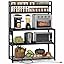 - 【Durable and Sturdy】: Made from 15mm thick P2 particle board, kitchen rack boast sturdy construction and high-quality materials. It can hold items up to 33lb (top two layers), 66lb (bottom two plates), and 44lb (iron grid layer)