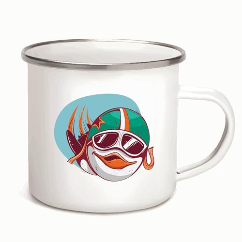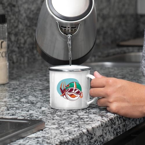 Gift for Aviation Lovers Penguin Pilot Helm and Goggles Flying Through the Air 12oz Enamel Silver Mug