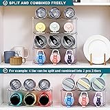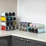 ★Large Compartment Fits Large Bottles or Tumblers - Unlike most water bottle storage products, we gathered customer complaints that what they have bought doesn't fit common large size water bottles. We improved it so that each compartment grid measures 4" wide and 4 " high, perfectly fitting some large water cups or bottles up to 40 OZ. ★For Example - for YETI or STANLEY Brand 30oz insulated tumbler; for Nalgenes Brand 32oz wide mouth water bottle; for Hydro Flask Brand 32oz/40oz wide mouth bottle; for STANLEY Brand 40oz insulated tumbler with handle, etc. ★Quick Assembly and Stacking - No tools required, just 1 minute to assemble. The water bottle storage holder rack are easily stackble and can be freely split and combined, you can assemble any tiers you want to maximize the space, such as 1 tier, 2 tiers, 3 tiers, 4 tiers, 5 tiers, 6 tiers and more. ★Simple 4-Tier Bottle Storage Holder Rack - Size: 13.5" L x 7.8" W x 14" H, hold 12 bottles. Modern, stylish and chic design complements any interior. Fits most household water bottles or tumblers, like glass or plastic water bottles, sport bottles, insulated travel mugs or tumblers, baby bottles, kids sippy cups and many more. Ridges on both sides prevent bottles from rolling and give each bottle a room. ★High Quality Clear Material and Solid Construction - Each shelf is made of thick clear plastic. Each tier is tightly connected by 4 sturdy solid posts. The 4 tier water bottle holder can hold up to 30 lbs each tier without wobble or crack. (Note: not dishwaher safe) ★Versatile Home Storage and Organization - Not only can you use it for water bottle storage in cabinet or counter top, but also for other scenarios such as pantry or fridge shelf, cupboard, wine cellar, under sink closet, kitchen or office countertop, bar, rv etc. You can use it to store many cylindrical items such as sodas, drinks, cans, toiletries, bottled condiments, wine displays and more.