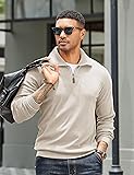 COOFANDY Men's Quarter Zip Up Pullover Mock Neck Long Sleeve Sweater Casual Corduroy Polo Sweatshirt