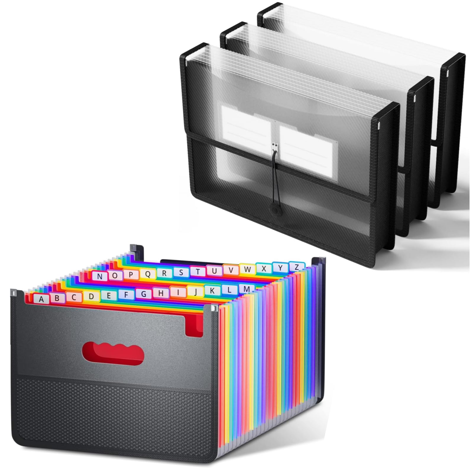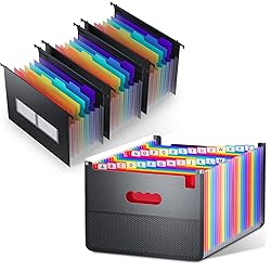 UPRIGHT & EXPANDABLE - ThinkTex Accordion File Organizer, 26 pockets, A-Z multi-colored tabs, Open top, for letter/A4 size CHEER UP YOUR FILE CABINET: ThinkTex innovative plastic hanging folder. Designed for letter size files and most standard files cabinets. 7 expandable pockets and 6 colorful dividers, large capacity LARGE CAPACITY & SPACE SAVER - 26 pockets, full size expansion top & bottom, expand and shrink with growing files flexibly, as small or large as a want it STURDY PLASTIC FOLDER : Made of Polypropylene (PP) material, more thicker, sturdy and durable than old paper folders. Each pocket is sealed on both sides, no files falling out from the side EASY ACCESS - No cover and no hamper, open top and A-Z colorful Tabs, coding files in alphabetical order, every Tab for a letter