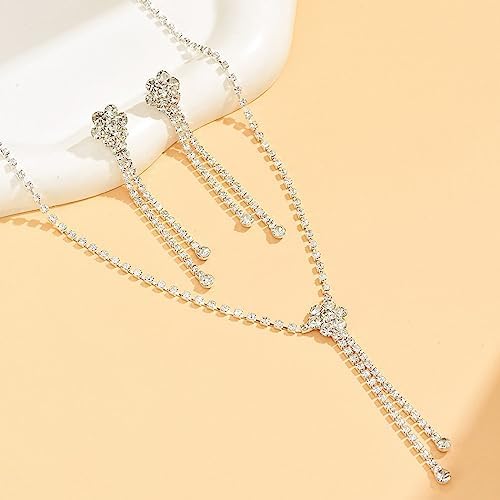 Unicra Silver Wedding Jewelry Set Bridal Rhinestone Necklace Earrings Set Crystal Bridesmaids Jewelry Accessories for Women and Brides