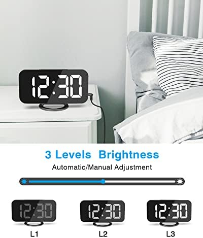 Digital Alarm Clocks,7" LED Mirror Electronic Clock,with 2 USB Charging Ports,Snooze Mode,Auto Adjust Brightness,Modern Desk Wall Clock for Bedroom Living Room Office - Black