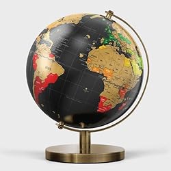 SCRATCH GLOBE - Our unique Scratch Map World Globe is the perfect desk accessory and a must-have for adults who love to travel. It transforms from a sleek, minimalist black globe into a personalized travel journal as you scratch off the gold foil of every country and continent you've visited, creating a stunning visual record of your journeys. STYLISH OFFICE & DESK DECOR - A sophisticated addition to any office or home, this black and gold globe is more than just a map. It serves as cool desk decor and a conversation starter, perfect for inspiring wanderlust and showing off your travel accomplishments. It’s a stylish piece that adds a touch of adventure to your desk. BUCKET LIST & ADVENTURE MAP - Use this unique world map to plot your bucket list of future travel destinations. As you scratch to reveal the gold map underneath, you can twist the globe to explore new places and get inspired for your next trip. It's an interactive way to plan and dream about all the adventures that await you. SUPERIOR QUALITY & DESIGN - Crafted with high-quality materials, this globes for adults is durable and built to last. The scratch-off foil is easy to remove with a coin, and the globe's sturdy base ensures it stays securely on your desk. It’s a premium piece of desk decor and a stylish alternative to any boring world map poster. TRAVEL GIFT - Our Scratch Globe is a brilliant and thoughtful present. It's an inspiring office gift for colleagues or a special souvenir for a frequent flyer. Give the gift of adventure and memories that will last a lifetime with this unique travel gadget.