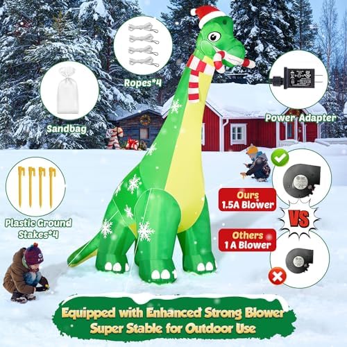 13FT Giant Dinosaur Christmas Inflatable Decorations, Built-in LED Lights, Strong Blower Huge Blow Up Yard Clearance Decor with Large Candy Cane Xmas Santa Hat Outdoor Indoor Holiday Party