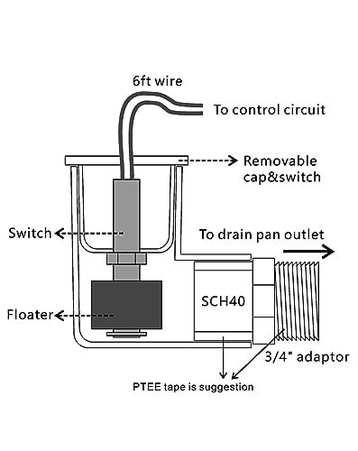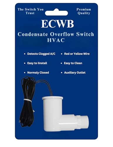 SS2 AC Float Switch AC Float Safety Switch HVAC 3/4 Inch Condensate Shut Off Sensor Can Prevent Overflow in Drain Pan or Gravity Drain Used in Various Applications. ECWB