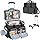 CURMIO Rolling Scrapbook Tote on Wheels, Scrapbook Storage Bag with Detachable Trolley and Bottom Wooden Board, Rolling Craft Bag for Scrapbooking Supplies, Black