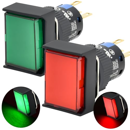 Package include : 2* Rectangle Momentary Push Button Switch 2* Wire Connector Sockets What's Momentary Switch: Momentary switch, Push & Hold, ON; Release, OFF What's the Wire Connector: With the wire connector, you don't need to solder the terminals, make installing very easy Saves the issue of soldering to the switch, and possibly melting it as well You can replace the switch anytime by just unplugging the switch from its socket What's Push Button Switch Used for: Great for electromagnetic starter, relay, Doorbell, Horn Button Switch, PC Power Switch or any circuit controls What's Note: -These switches come with a rubber O-ring which makes them splash resistant but they can NOT be submerged underwater -The project you are going to be used for, don't let current go above 5 amps. Or the switch will get warm and to be burned out What's Customer Support: If you have any questions, feel free to contact us by E-mail any time. We get professional customer service staff and technician to help you Specifications: Head diameter: Rectangle 18*24mm(0.71"*0.94“) Mounting hole size: 16mm (0.63") The total length:39.5mm(1.56") Switch combination: SPDT 1NO1NC Switch rating: 5A/250VAC, LED Rated Voltage:24V DC ,Current: 8mA DC, 9mA AC Material Shell: POM Nut: PA66 Base: PBT Terminal: phosphor copper Contact material: silver Protection level: IP65