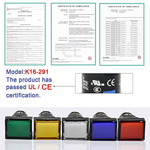 16MM Push Button Switch Rectangle UL Certified with Light 24V DC 1NO 1NC SPDT 5 Pin with Socket Plug Waterproof IP65 0.63 Inch Mounting Hole