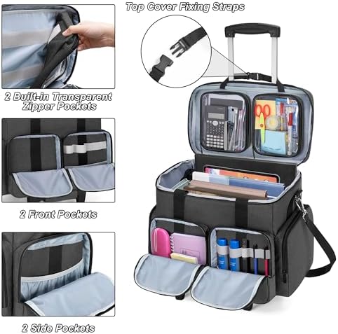 - ROOMY MAIN COMPARTMENT - Rolling teacher tote with 2 padded sleeves for file folder, iPad or laptop (up to 15.6"). Large capacity main compartment for carrying teacher essentials, like binders, research paper. 2 interior side pockets for teacher cosmetics, water bottles, umbrellas, etc.