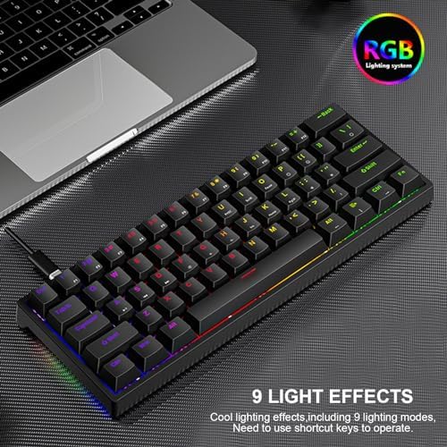 Waterproof Gaming Keyboard USB Wired Mechanical Keyboard 60 Percent Keyboard for Computer Laptop Portable Light Up Keyboard RGB Backlit Keyboard Gaming Accessories Cool Stuff (61 Keys)