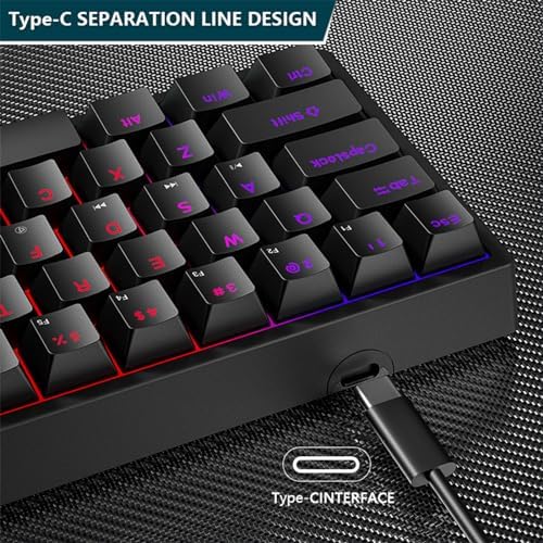 - 【Easy to Operate】Wired Gaming Keyboard 61 Keys Small Keyboard, Key Cable Separation, Mechanical Feeling