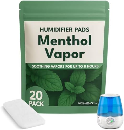 20 Pack Menthol Eucalyptus Humidifier Pads - Soothing Vapor Pad Refills for Congestion Relief on all Vks, Crane, More - Vapopads Replacement, Natural Waterless Vaporizers Pads, Cold/Flu Symptom Relief