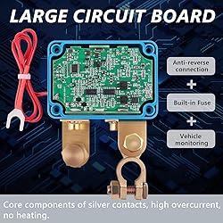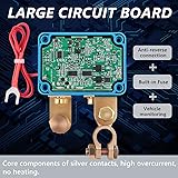 【 Protecting & Extending Battery Life: 】Maximize car battery storage and lifespan. Avoid power drain from long-term parking, electronic device usage, or forgetting to turn off lights. Our disconnect switch effectively safeguards and extends battery power 【Specifications:】 Starting Current: 500A, Standby Power Consumption: 5mA, Power-off Threshold: 11.9V±0.2V, Instantaneous Current: 2400A, Operating Temperature: -20℃ to 90℃, Rated Voltage: 12V, Voltage Range: 10V to 16V, Waterproof Rating: IPX6, Suitable for Engines under 4.0L, Copper Cross-Sectional Area: 45mm² 【Smart Voltage Management】: Continuously monitors and reacts to battery voltage levels; auto-shuts off below 11.9V after 5 minutes, disables remote control above 13.3V to prevent unintended operation 【Ultra-Low Standby Current】: With a minimal draw of only 0.005A, this anti-theft car kill switch's standby consumption is significantly lower than the typical vehicle's 65mA, ensuring it won't drain your battery 【 Wide Application: 】Suitable for most DC 12V vehicles with displacement less than 4.0, such as cars, boats, RVs, trailers, trucks, ATVs, UTVs, and motorcycles. Not compatible with vehicles with small pile head terminals