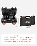 Cr-Mo Industrial-Grade Alloy Steel: Crafted from premium impact-grade alloy steel, our 1/2 impact socket set with Cr-Mo industrial-grade alloy steel offers exceptional enhancements in impact resistance and absorption. Through the utilization of vacuum heat treatment, the steel undergoes rapid heating and cooling processes, resulting in a polished and highly durable surface. This makes it well-suited for a wide range of operational environments. High Torque: Distinguished by its hexagonal drive design, which sets it apart from traditional designs lacking rounded corners, this socket tool set significantly reduces pressure exerted on fasteners during impact. As a result, it minimizes wear and effectively prevents bolt rounding and stripping. Easy-to-Read Size Markings: The size markings on these 9pcs impact driver socket set are meticulously laser-etched and rolled, ensuring effortless identification of socket sizes even in low light conditions. Convenient Storage & Transportation: The set is accompanied by a moderate-weight metal toolbox, providing convenient portability. The toolbox facilitates organized storage of the tools after use, eliminating the risk of unnecessary scattering or loss. Abundant Components: This comprehensive set includes 9pcs 1/2" metric deep impact sockets: 29 mm, 30 mm, 31 mm, 32 mm, 33 mm, 34 mm, 35 mm, 36 mm, 38 mm.