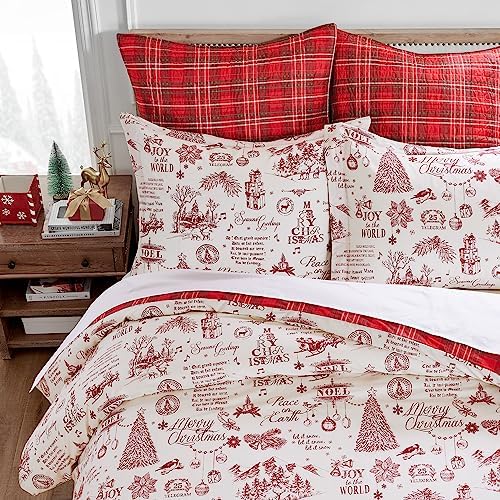 - COORDINATE YOUR ROOM DECOR: Create a wonderful bedroom space with our coordinated Yuletide duvet set. The red and cream design brings classic holiday accents into your home and will match a variety of different looks and bedroom decor. You can also freshen your room with matching quilts, shams, decorative pillows, euro shams, comforters and quilted throws from the Levtex Home collection.