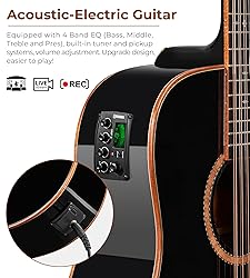 [12-string guita]: A twelve-string guitar is a steel-string guitar with 12 strings in six courses, which produces a thicker, more ringing tone than a standard six-string guitar. Typically, the strings of the lower four courses are tuned in octaves, with those of the upper two courses tuned in unison [Premium Wood & Excellent Tonal Quality]: DG120 Pro 12 string guitar adopts AAA spruce wood as top, and high quality sapele wood as back & sides, producing bright and resonant sound, having great balance between clarity, warmth, and projection. With bone nut and bone saddle, offering better sound quality, sustain, and playability [Upgraded Built-in Pickup Systems]: 12-string guitar with a built-in tuner and 4-band EQ (Bass, Middle, Treble, Presence) lets you shape your sound. The upgraded pickup system ensures durability and stability. It can be plugged into an amp or PA system or used as a standard acoustic guitar. Ideal for stage performances, band jams, studio recording, home practice, street shows, or parties [Precise Tuning]: Zinc alloy 18:1 fully closed tuning pegs, easy to tune and keep tune, more stable and accurate. 12 string acoustic electric guitar has nice little gold fishtail handle for a better grip. Besides, it has built-in tuner and an extra clip-on digital tuner, you can tune anywhere anytime you want [Practical Design]: 12 string acoustic guitar adopts smooth rounded fret ends design, extremely smooth, no worry about scratching fingers anymore. Besides, it has low action and comfortable C-shape neck, help perform fluently. And it equipped with a truss rod to keep the neck straight, durable and adjustable [Complete Guitar Kit]: This 12 strings electric acoustic guitar set comes with many practical accessories, including guitar bag, tuner, guitar strap, guitar cable, guitar picks and capo. Suitable for intermediate player or for who begin to try 12-string guitar, Dad gifts for fathers day