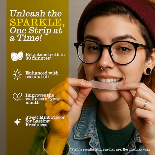 - FAST-ACTING, VISIBLE WHITENING: Brighten your smile in just 30 minutes* with our professional-strength whitening strips. Formulated to lift stains & brighten teeth, leaving your mouth feeling fresh & clean. *Individual results may vary.