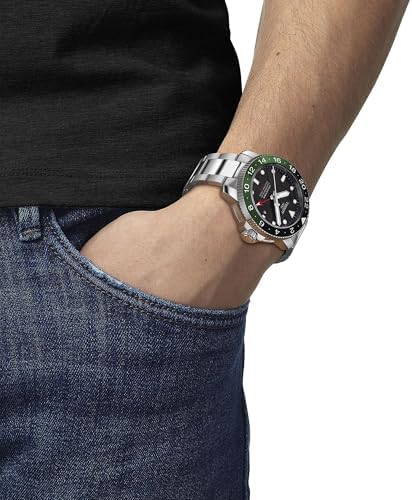 Con una resistencia al agua hasta una profundidad submarina de casi trescientos metros, este reloj automático de fabricación suiza está diseñado para buceadores y amantes de los deportes acuáticos. Montado en una pulsera de acero inoxidable, este reloj de alto rendimiento también cuenta con una bisel de cerámica unidireccional y marcadores luminiscentes para una fácil legibilidad en condiciones de poca luz.